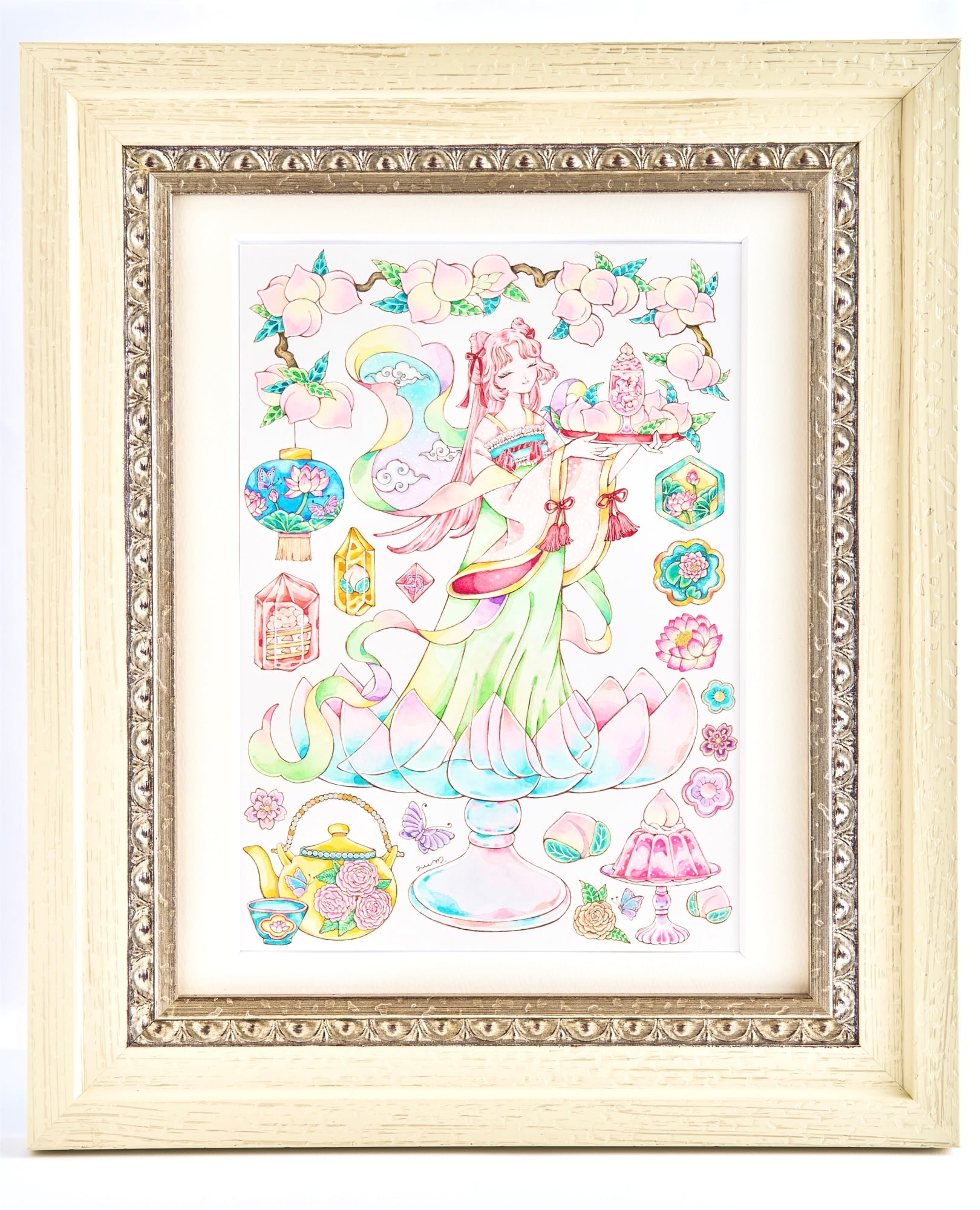 水彩、パール顔彩、ペン、アルシュ紙
